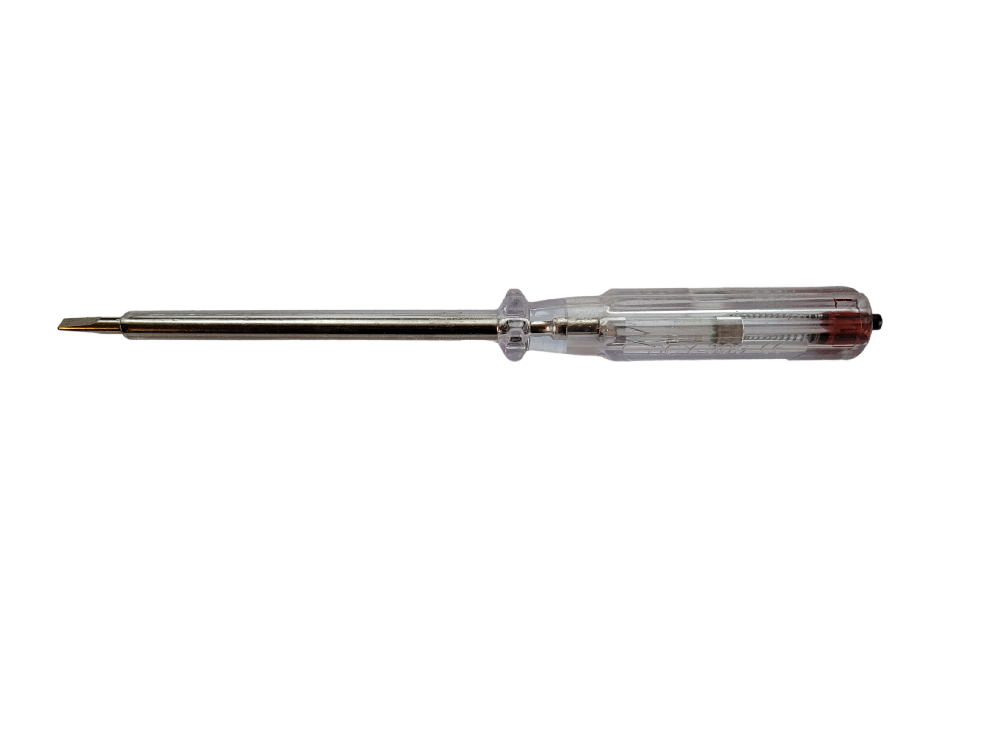 Wskaźnik napięcia prądu od 125 do 250V, posiada neonową diodę sygnalizacyjną, stalowy grot z płaską końcówką wkrętaka bez izolacji na odcinku 15 mm i izolowany na całej pozostałej długości, nie wymaga baterii, zgodny z obowiązującymi normami. Do zastosowania w warsztatach rzemieślniczych, gospodarstwach domowych i pracach hobbystycznych.