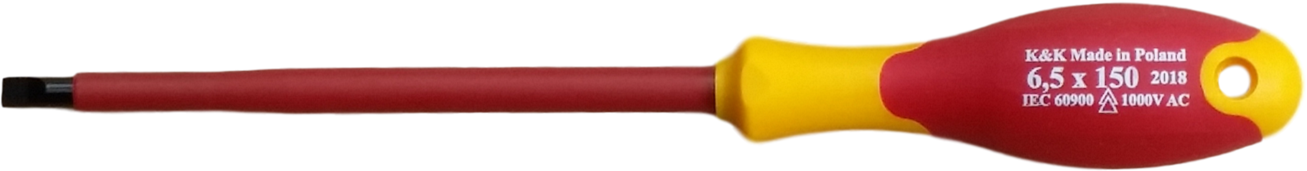 WKRĘTAK ELEKTRYCZNY ŚRUBOKRĘT IZOLOWANY 6,5x150 1000V ORYGINALNY K&K POLSKI PŁASKI